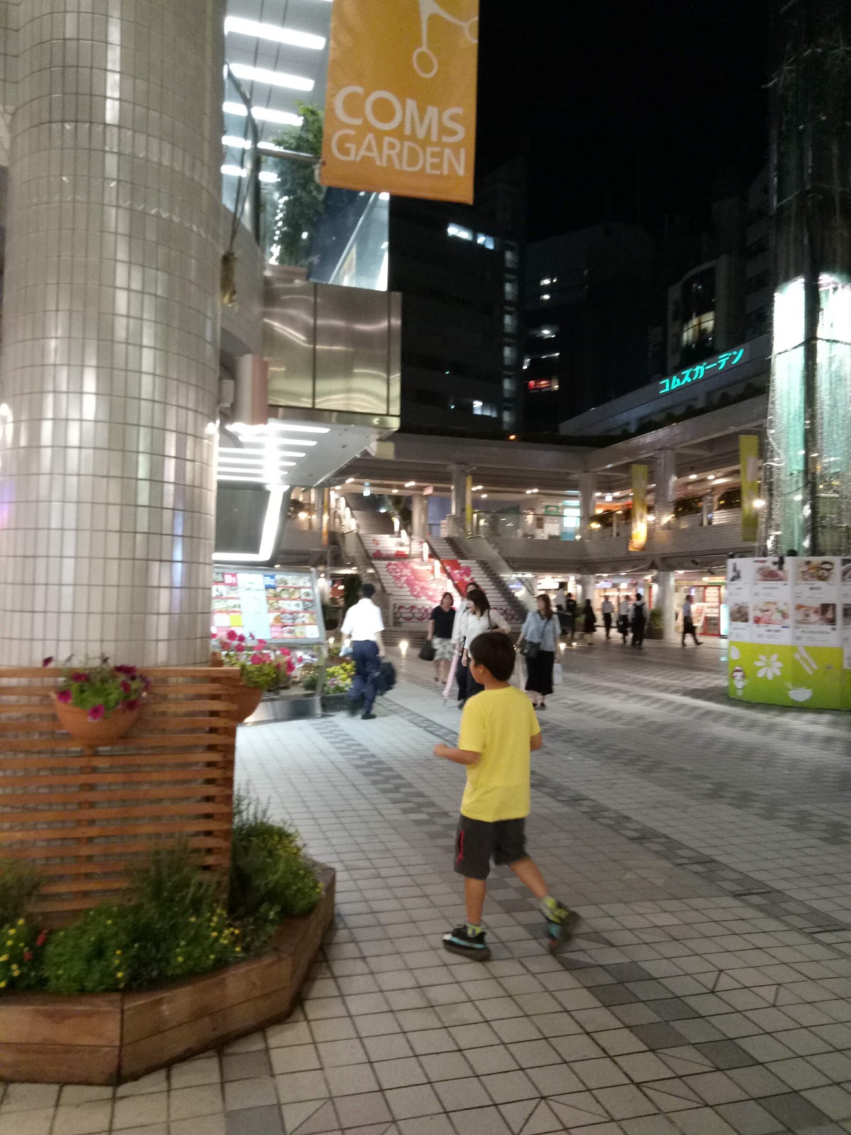 Nah, langit on off antara terik dan berawan lihat orang memegang payung. Di seberang ini akan Lego discovery center, Ferris Wheel as shown, dan paling ujung kiri akan ada Aquarium Kaiyukan.
